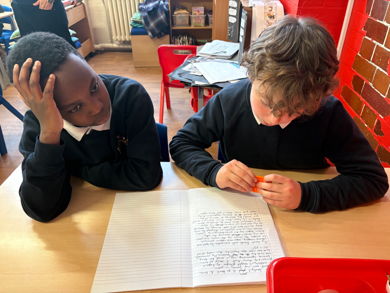 6W gave feedback on what they liked about the Year 5's pieces of writing. The Year 6 said that they liked the adjectives that they had chosen, they liked how they had created suspense and they thought the spelling was impressive! The Year 6s also gave feedback on what the next steps should be and they identified that we needed to work on using clear, joined handwriting.