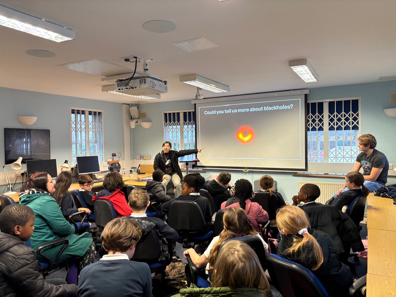 Along the way, we asked lots of interesting questions about space that the students answered. At the end, the students answered some of the questions that we had sent them in advance. As a class, we are particularly interested in Black Holes and we found out more about 'spaghettification'.