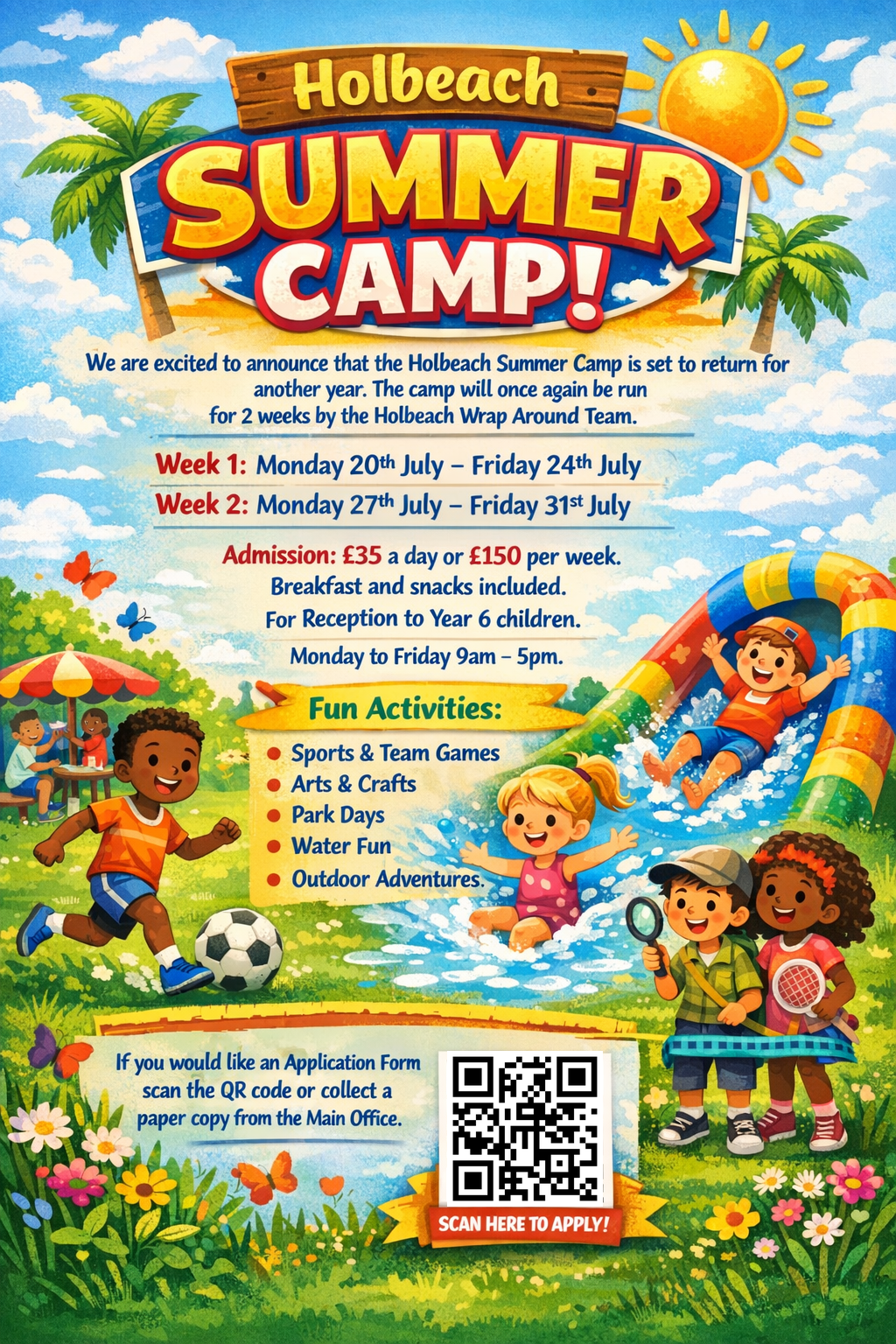 After the huge success of our Summer Camp in 2025, we are excited to announce that it will be back in 2026. It will once again run for two weeks during the summer holidays. This is a fantastic opportunity for children to enjoy a wide range of fun, active and creative experiences right here at school. The camp will be run by our very own Holbeach Wrap-Around Team, who many of you will already know.